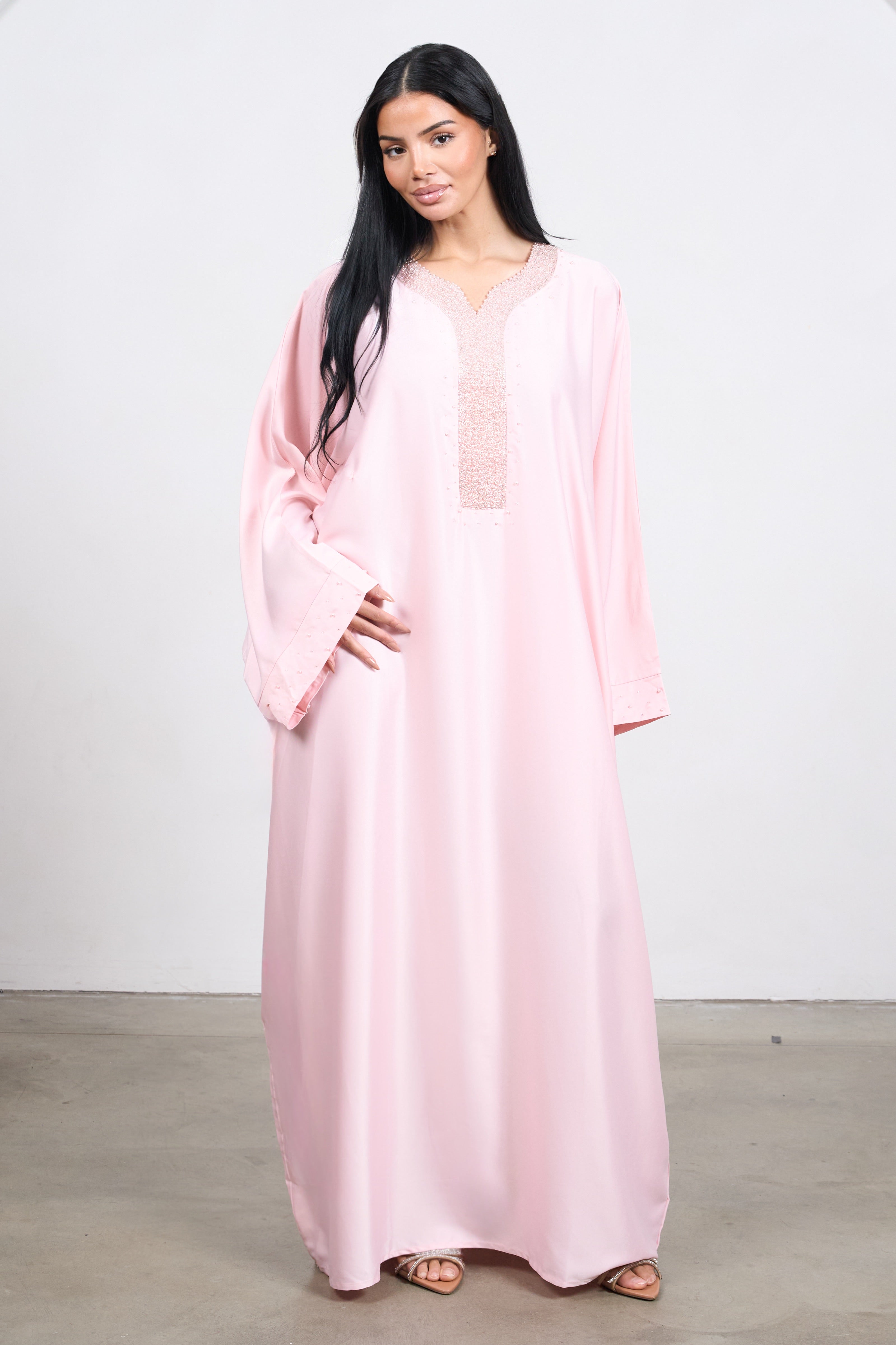 Abaya with inner belt - pink