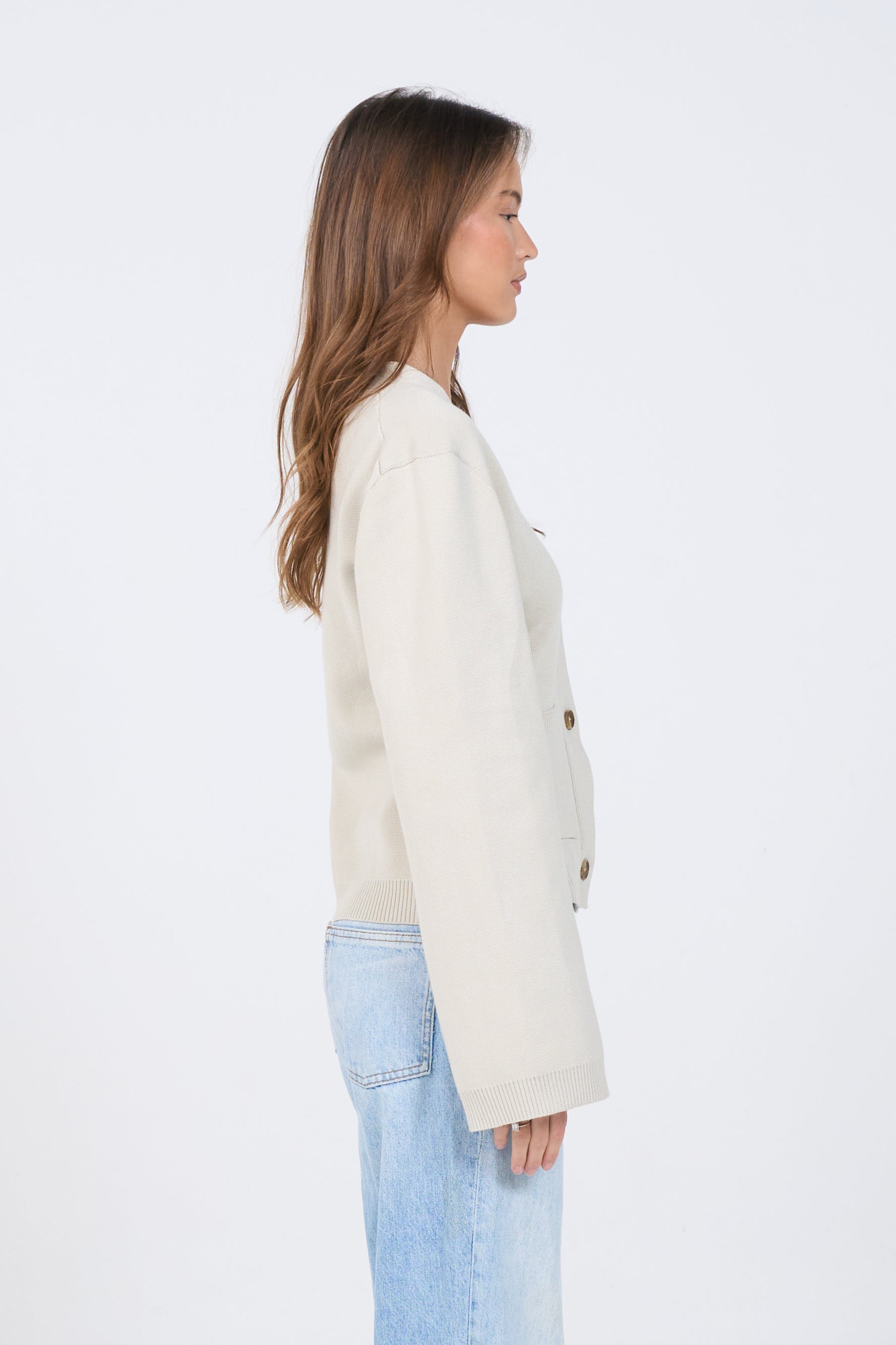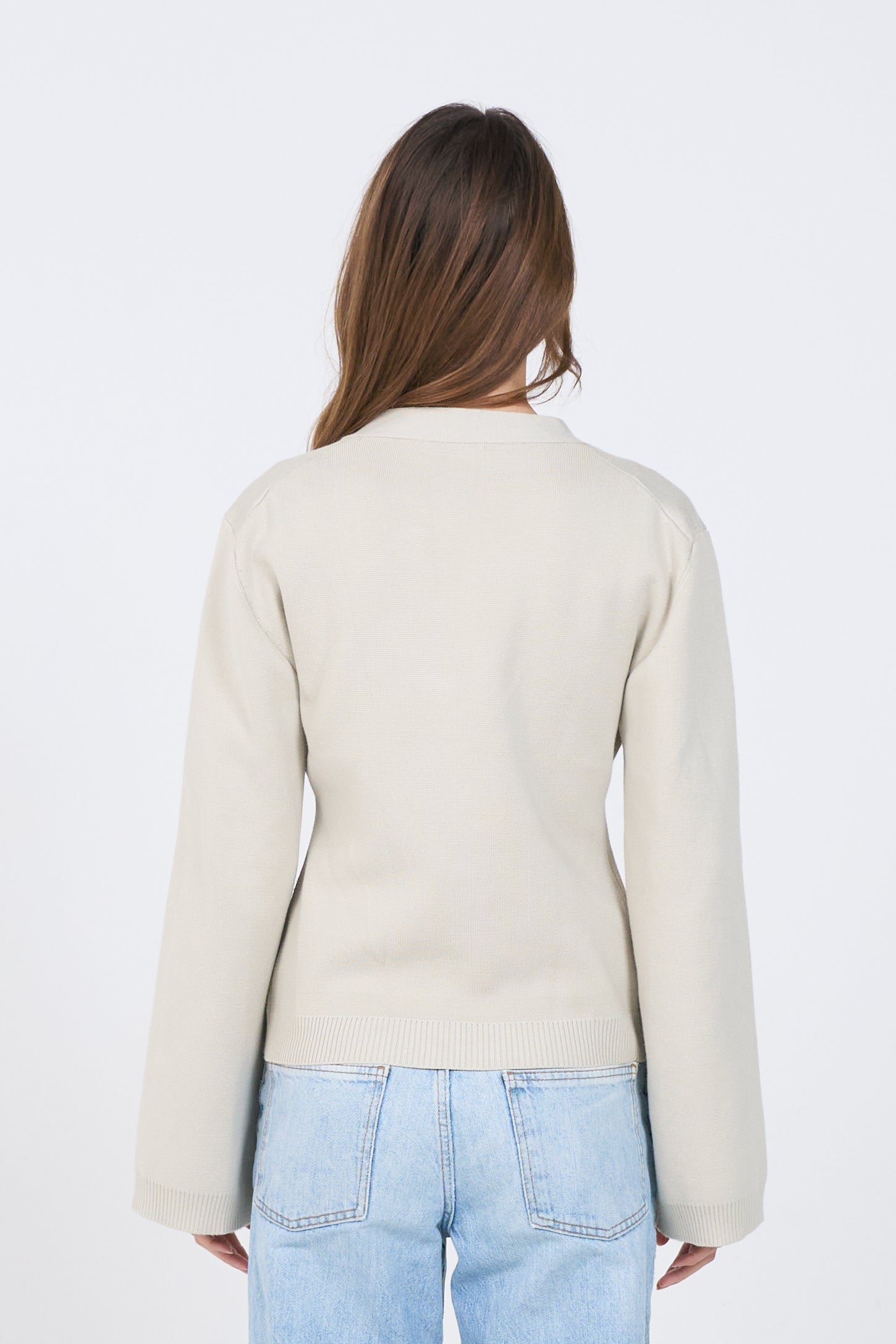 Crafted from a soft, cozy knit fabric, it offers a relaxed fit that’s ideal for layering over your favorite tops or dresses. The neutral beige tone makes it a versatile piece you can wear season after season — from cool summer evenings to crisp autumn days.
