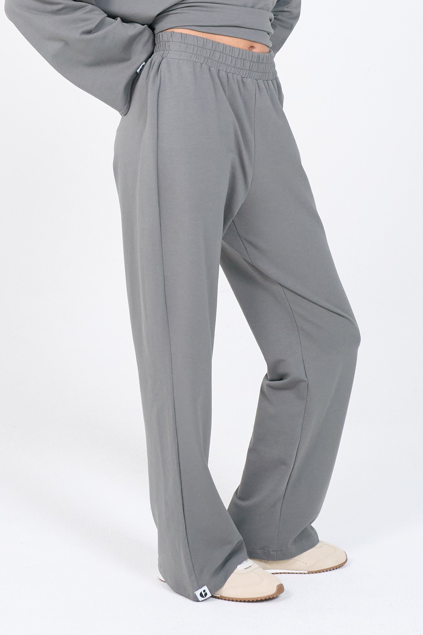 Grey cotton wide-leg pants for women | Relaxed loungewear pants 100% cotton