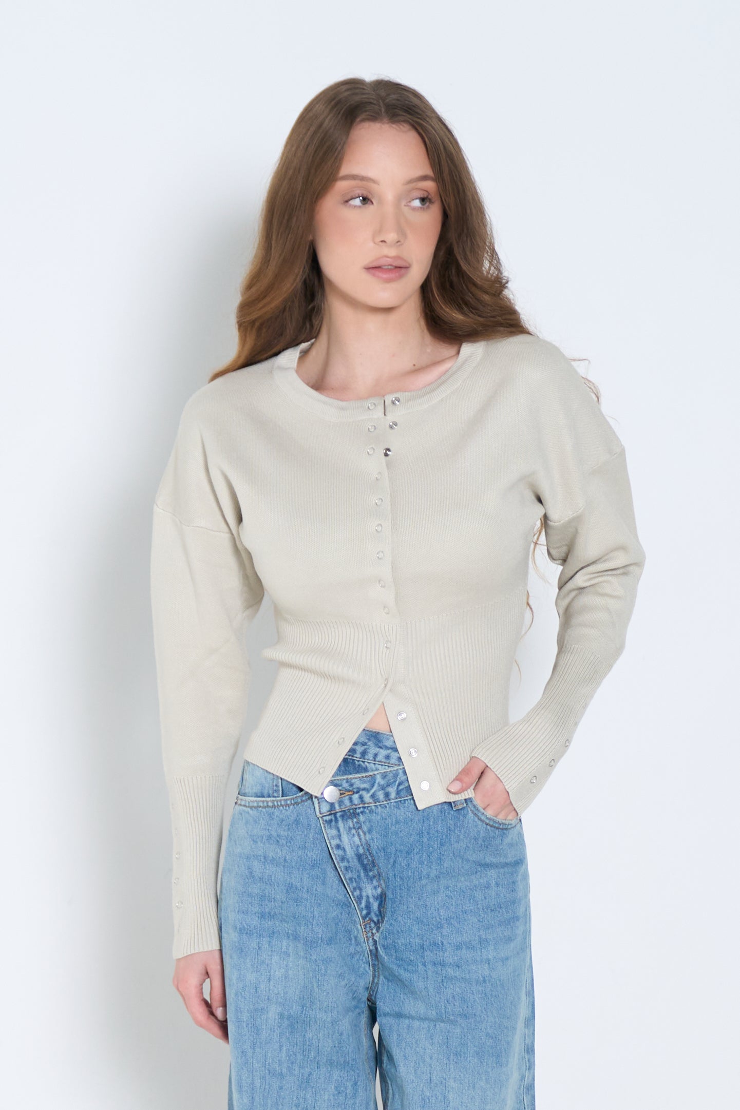 Meet the Buttoned Knit Top — a timeless wardrobe essential with a refined touch.