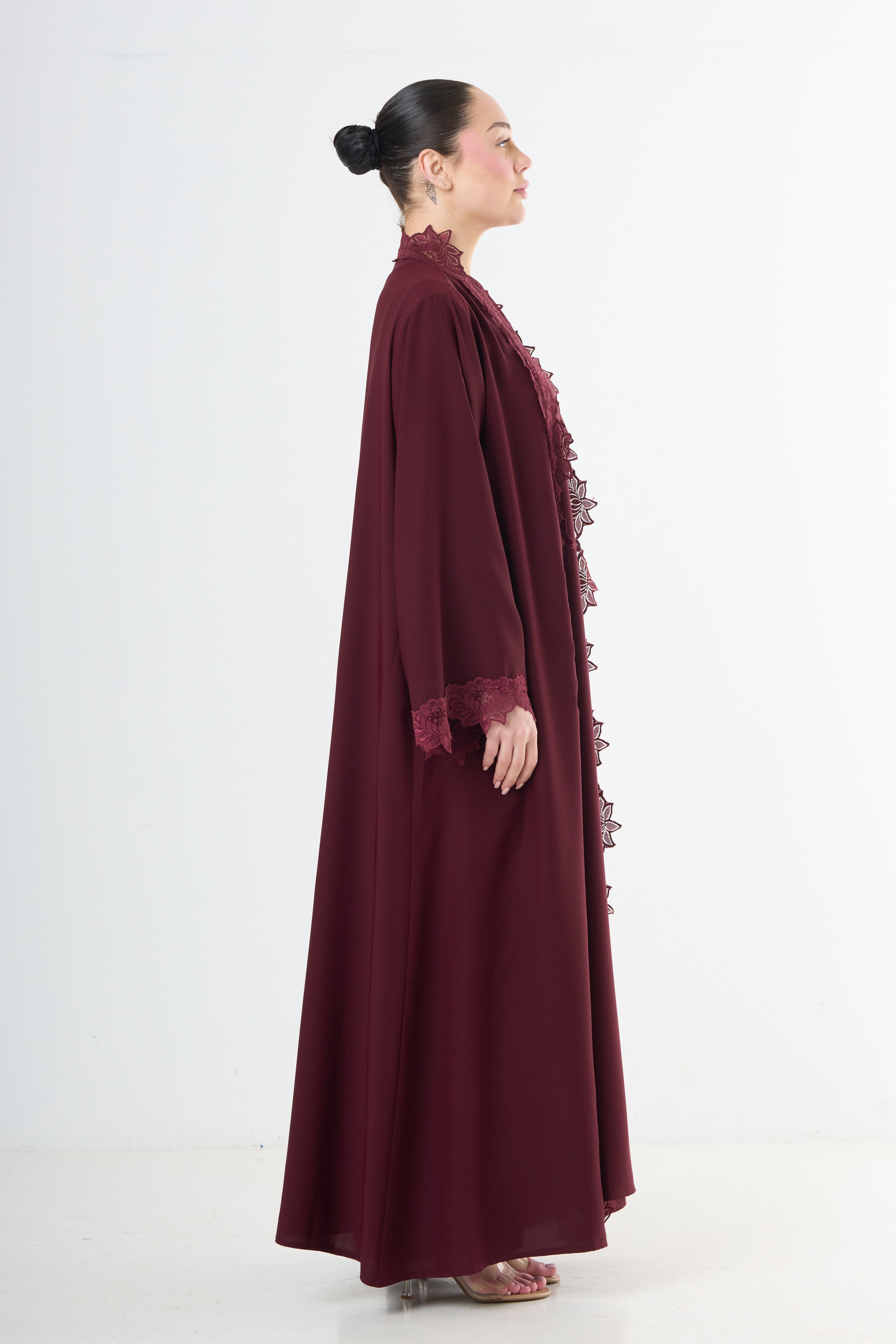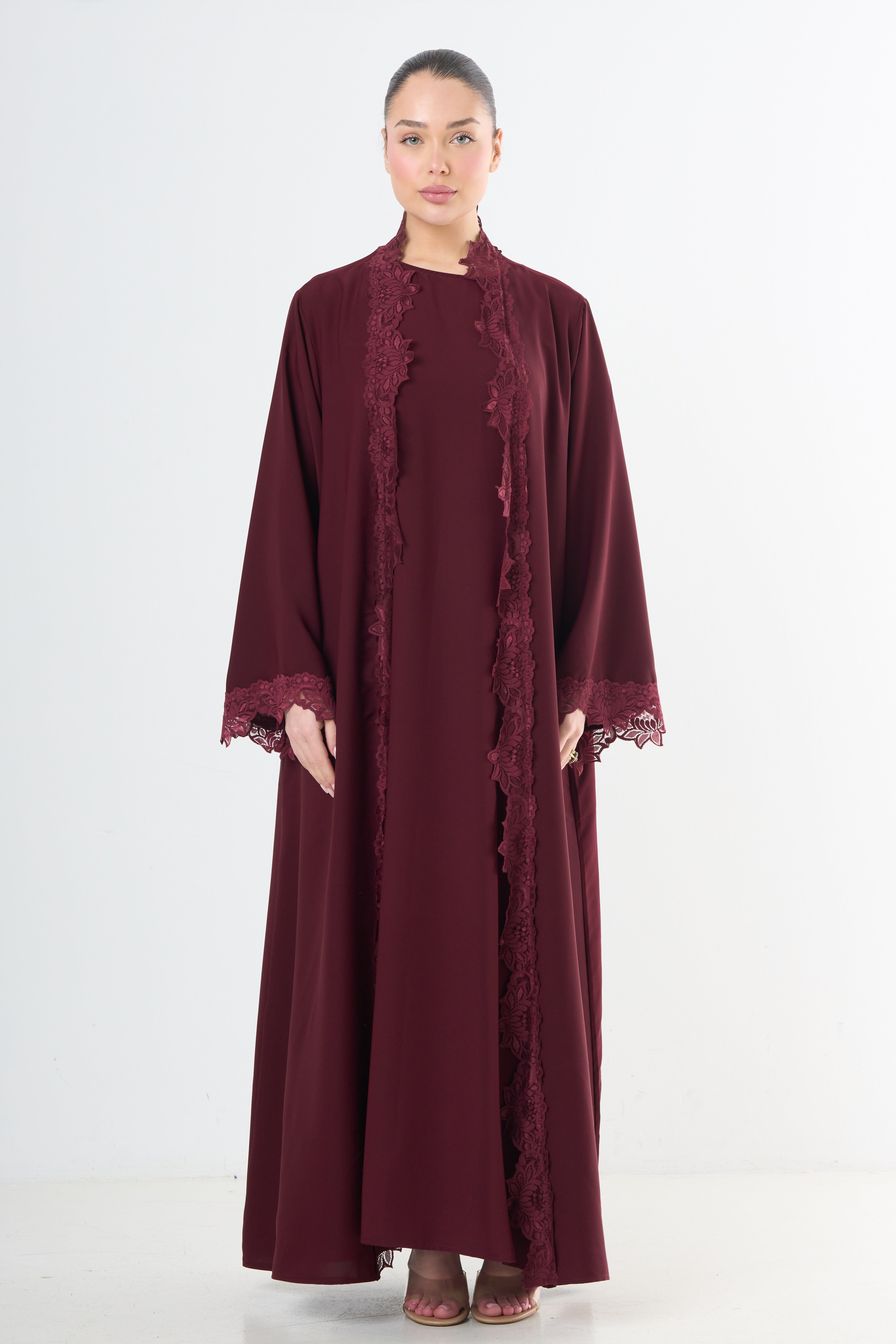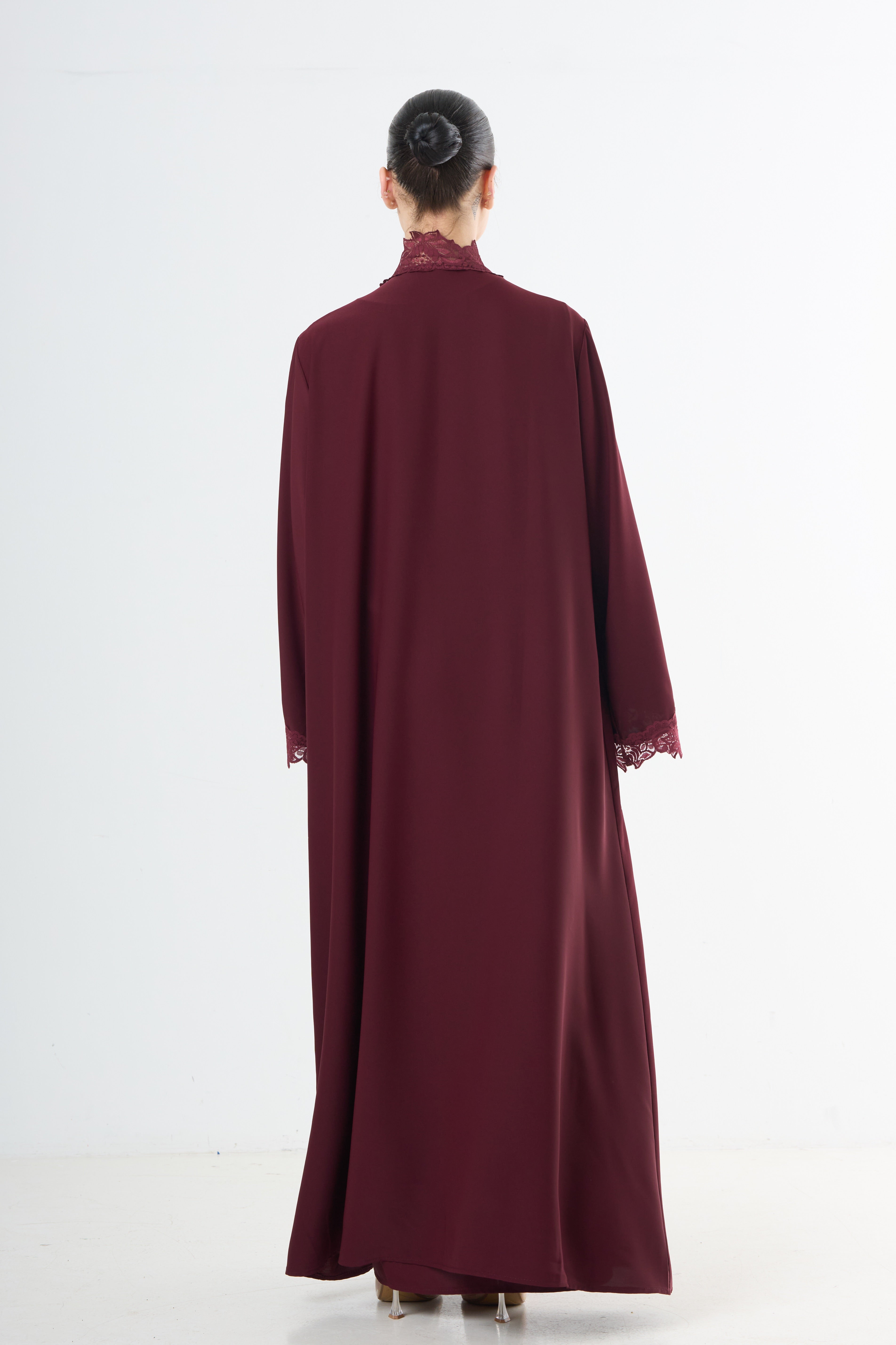 Lace Abaya Set - Wine