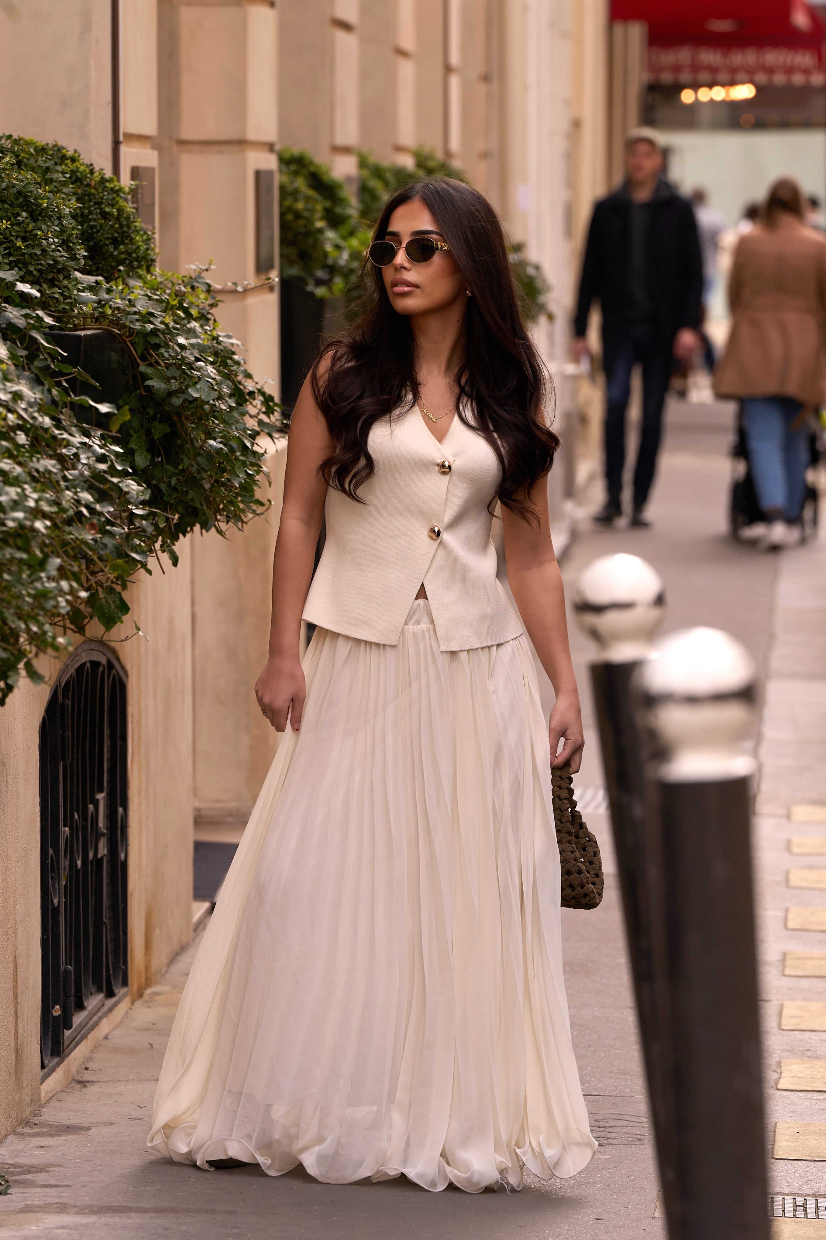 Elevate your wardrobe with our Plisse Skirt! The delicate pleats add texture and movement to your outfit, while the midi length creates a flattering silhouette. Perfect for pairing with heels or boots, this skirt will take your style to new heights.
