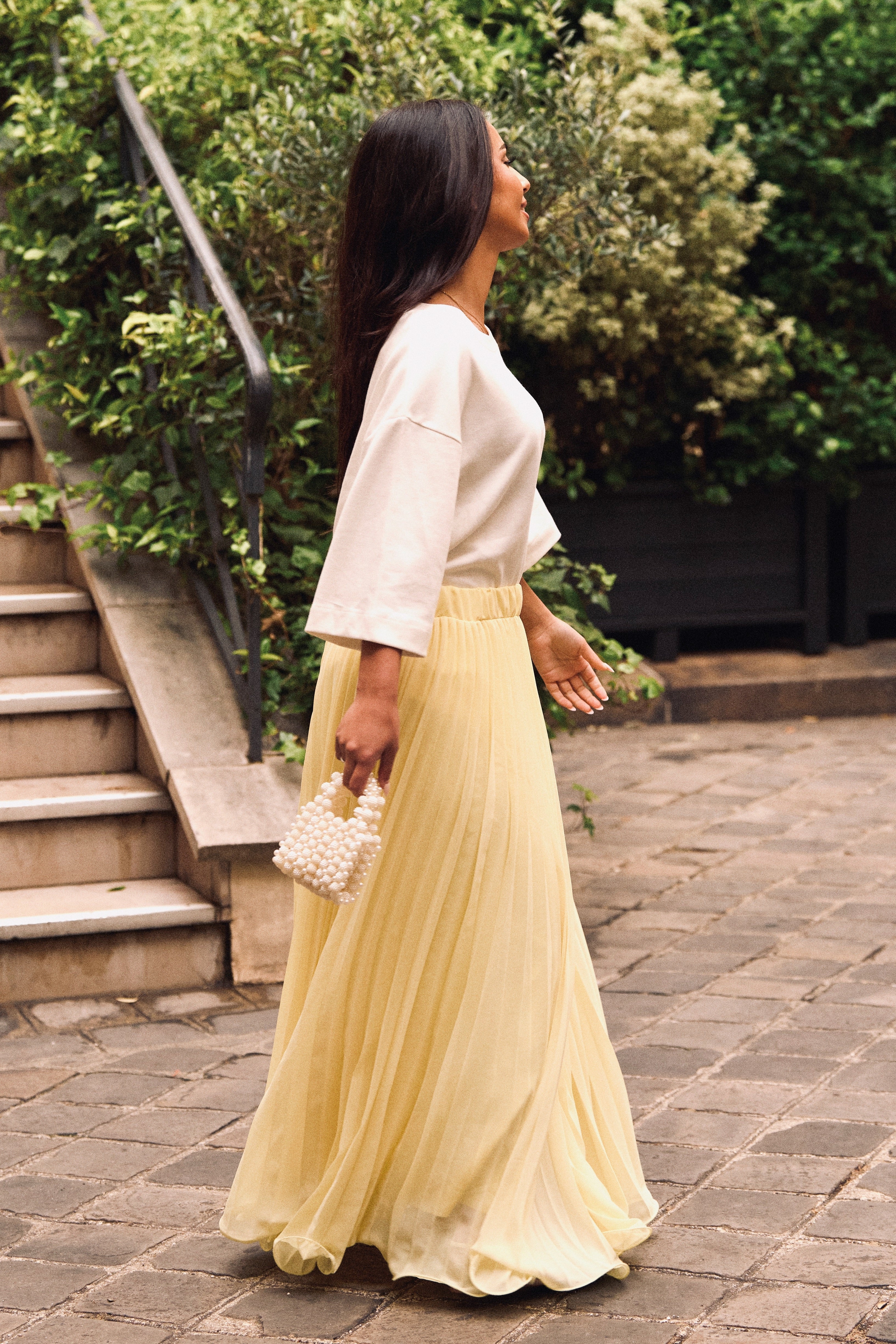 Elevate your wardrobe with our Plisse Skirt! The delicate pleats add texture and movement to your outfit, while the midi length creates a flattering silhouette. Perfect for pairing with heels or boots, this skirt will take your style to new heights.